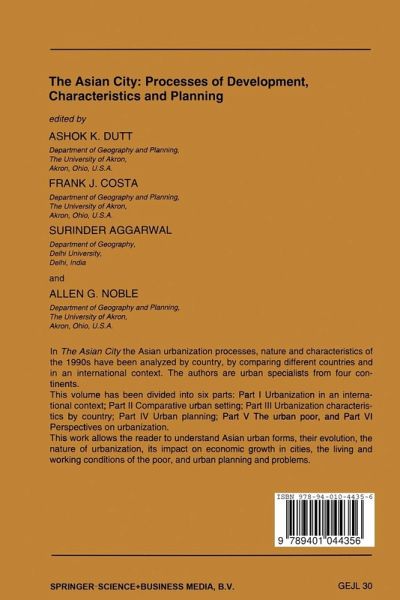 In The Asian City the Asian urbanisation processes, nature and characteristics of the 1990s have been analyzed by countries, by comparing different countries and in an international context. The authors are urban specialists from four continents. This volume has been divided into six parts: Part I Urbanisation in an international context; Part II Comparative urban setting; Part III Urbanisation characteristics by country; Part IV Urban planning; Part V The urban poor, and Part VI Perspectives on urbanization. This work allows the reader to understand Asian urban forms, their evolution, the nature of urbanisation, its impact on economic growth in cities, the living and working conditions of the poor, and urban planning and problems.