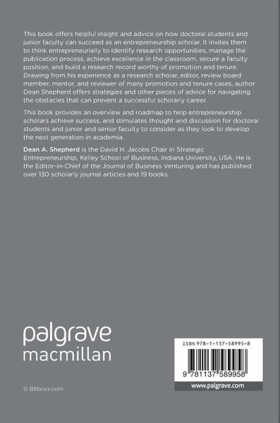 This book offers helpful insight and advice on how doctoral students and junior faculty can succeed as an entrepreneurship scholar. It invites them to think entrepreneurially to identify research opportunities, manage the publication process, achieve excellence in the classroom, secure a faculty position, and build a research record worthy of promotion and tenure. Drawing from his experience as a research scholar, editor, review board member, mentor, and reviewer of many promotion and tenure cases, author Dean Shepherd offers strategies and other pieces of advice for navigating the obstacles that can prevent a successful scholarly career.