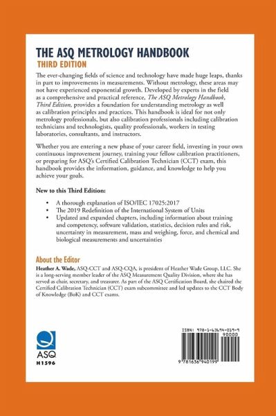 The ever-changing fields of science and technology have made huge leaps, thanks in part to improvements in measurements. Without metrology, these areas may not have experienced exponential growth. Developed by experts in the field as a comprehensive and practical reference, The ASQ Metrology Handbook, Third Edition provides a foundation for understanding metrology as well as calibration principles and practices. This handbook is ideal for not only metrology professionals, but also calibration professionals including calibration technicians and technologists, quality professionals, workers in testing laboratories, consultants, and instructors. Whether you are entering a new phase of your career field, investing in your own continuous improvement journey, training your fellow calibration practitioners, or preparing for ASQ's Certified Calibration Technician (CCT) exam, this handbook provides the information, guidance, and knowledge to help you achieve your goals. New to this Third Edition: - A thorough explanation of ISO/IEC 17025:2017 - The 2019 Redefinition of the International System of Units - Updated and expanded chapters, including information about training and competency, software validation, statistics, decision rules and risk, uncertainty in measurement, mass and weighing, force, and chemical and biological measurements and uncertainties