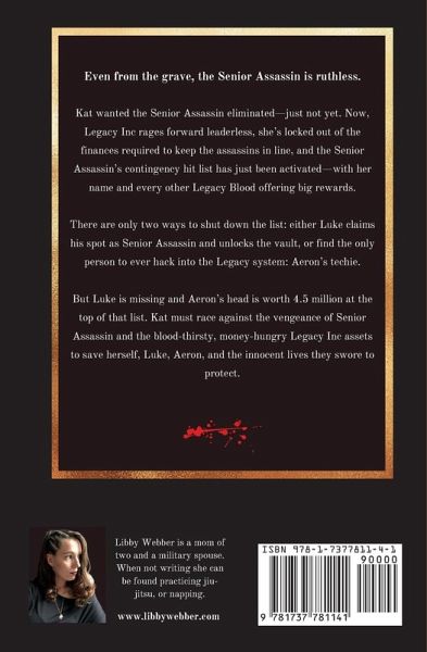Even from the grave, the Senior Assassin is ruthless. Kat wanted the Senior Assassin eliminated-just not yet. Now, Legacy Inc rages forward leaderless, she's locked out of the finances required to keep the assassins in line, and the Senior Assassin's contingency hit list has just been activated-with her name and every other Legacy Blood offering big rewards. There are only two ways to shut down the list: either Luke claims his spot as Senior Assassin and unlocks the vault, or find the only person to ever hack into the Legacy system: Aeron's techie. But Luke is missing and Aeron's head is worth 4.5 million at the top of that list. Kat must race against the vengeance of Senior Assassin and the blood-thirsty, money-hungry Legacy Inc assets to save herself, Luke, Aeron, and the innocent lives they swore to protect.