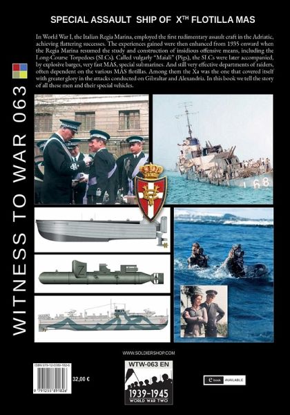 In World War I, the Italian Regia Marina, employed the first rudimentary assault craft in the Adriatic, achieving flattering successes. The experiences gained were then enhanced from 1935 onward when the Regia Marina resumed the study and construction of insidious offensive means, including the Long-Course Torpedoes (SLCs). Called vulgarly "Maiali" (Pigs), the SLCs were later accompanied, by explosive barges, very fast MAS, special submarines. And still very effective departments of raiders, often dependent on the various MAS flotillas. Among them the Xa was the one that covered itself with greater glory in the attacks conducted on Gibraltar and Alexandria. In this book we tell the story of all these men and their special vehicles.