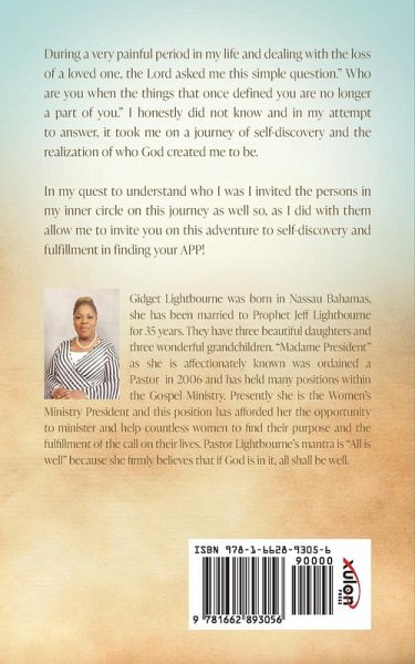 During a very painful period in my life and dealing with the loss of a loved one, the Lord asked me this simple question." Who are you when the things that once defined you are no longer a part of you." I honestly did not know and in my attempt to answer, it took me on a journey of self-discovery and the realization of who God created me to be. In my quest to understand who I was I invited the persons in my inner circle on this journey as well so, as I did with them allow me to invite you on this adventure to self-discovery and fulfillment in finding your APP! Gidget Lightbourne was born in Nassau Bahamas, she has been married to Prophet Jeff Lightbourne for 35 years. They have three beautiful daughters and three wonderful grandchildren. "Madame President" as she is affectionately known was ordained a Pastor in 2006 and has held many positions within the Gospel Ministry. Presently she is the Women's Ministry President and this position has afforded her the opportunity to minister and help countless women to find their purpose and the fulfillment of the call on their lives. Pastor Lightbourne's mantra is "All is well" because she firmly believes that if God is in it, all shall be well.
