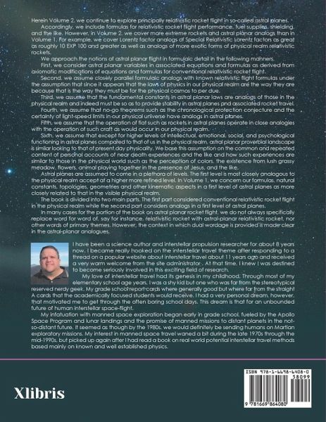 Herein Volume 2, we continue to explore principally relativistic rocket flight in so-called astral planes. Accordingly, we include formulas for relativistic rocket flight performance, fuel supplies, shielding, and the like. However, in Volume 2, we cover more extreme rockets and astral planar analogs than in Volume 1. For example, we cover Lorentz factor analogs of Special Relativistic Lorentz factors as great as roughly 10 EXP 100 and greater as well as analogs of more exotic forms of physical realm relativistic rockets. We approach the notions of astral planar flight in formulaic detail in the following manners. First, we consider astral planar variables in associated equations and formulas as derived from axiomatic modifications of equations and formulas for conventional relativistic rocket flight. Second, we assume closely parallel formulaic analogs with known relativistic flight formulas under the assumption that since it appears that the laws of physics in our physical realm are the way they are because that is the way they must be for the physical cosmos to per due. Third, we assume that the fundamental constants in astral planar laws are analogs of those in the physical realm and indeed must be so as to provide stability in astral planes and associated rocket travel. Fourth, we assume that no-go theorems such as the chronological protection conjecture and the certainty of light-speed limits in our physical universe have analogs in astral planes. Fifth, we assume that the operation of fiat such as rockets in astral planes operate in close analogies with the operation of such craft as would occur in our physical realm. Sixth, we assume that except for higher levels of intellectual, emotional, social, and psychological functioning in astral planes compared to that of us in the physical realm, astral planar proverbial landscape is similar looking to that of present day physicality. We base this assumption on the common and repeated content of personal accounts of near death experiences and the like and how such experiences are similar to those in the physical world such as the perception of colors, the existence from lush grassy meadow, flowers, animal playing together in the presence of Jesus, and the like. Astral planes are assumed to come in a plethora of levels. The first level is most closely analogous to the physical realm accept at a higher more refined level. In Volume 1, we concern our formulas, natural constants, topologies, geometries and other kinematic aspects in a first level of astral planes as more closely related to that in the visible physical realm. The book is divided into two main parts. The first part considered conventional relativistic rocket flight in the physical realm while the second part considers analogs in a first level of astral planes. In many cases for the portion of the book on astral planar rocket flight, we do not always specifically replace word for word of, say for instance, relativistic rocket with astral-planar relativistic rocket, nor other words of primary themes. However, the context in which dual wordage is provided is made clear in the astral-planar analogues.