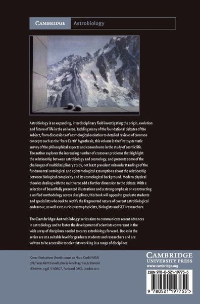 Astrobiology is an expanding, interdisciplinary field investigating the origin, evolution and future of life in the universe. Tackling many of the foundational debates of the subject, from discussions of cosmological evolution to detailed reviews of common concepts such as the 'Rare Earth' hypothesis, this volume is the first systematic survey of the philosophical aspects and conundrums in the study of cosmic life. The author's exploration of the increasing number of cross-over problems highlights the relationship between astrobiology and cosmology and presents some of the challenges of multidisciplinary study. Modern physical theories dealing with the multiverse add a further dimension to the debate. With a selection of beautifully presented illustrations and a strong emphasis on constructing a unified methodology across disciplines, this book will appeal to graduate students and specialists who seek to rectify the fragmented nature of current astrobiological endeavour, as well as curious astrophysicists, biologists and SETI enthusiasts.