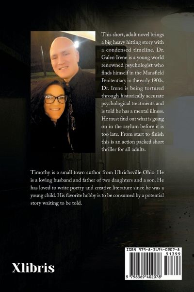 This short, adult novel brings a big heavy hitting story with a condensed timeline. Dr. Galen Irene is a young world renowned psychologist who finds himself in the Mansfield Penitentiary in the early 1900s. Dr. Irene is being tortured through historically accurate psychological treatments and is told he has a mental illness. He must find out what is going on in the asylum before it is too late. From start to finish this is an action packed short thriller for all adults.