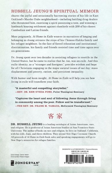Russell Jeung's spiritual memoir shares the difficult, often joyful, and sometimes harrowing account of his life in East Oakland's Murder Dubs neighborhood and of his Chinese-Hakka history. On a journey to discover how the poor and exiled are blessed, At Home in Exile is the story of his integration of social activism and a stubborn evangelical faith. Holding English classes in his apartment (which doubled as a food pantry for a local church) for undocumented Latino neighbors and Cambodian refugees, battling drug dealers who threatened him, exorcising a spirit possessing a teen, and winning a landmark housing settlement against slumlords with a gathering of his neighbors--Jeung's story is, by turns, moving and inspiring, traumatic and exuberant. As Jeung retraces the steps of his Chinese-Hakka family and his refugee neighbors, weaving the two narratives together, he asks difficult questions about longing and belonging, wealth and poverty, and how living in exile can transform your faith: "Not only did relocation into the inner city press me toward God, but it made God's words more distinct and clear to me...As I read Scriptures through the eyes of those around me--refugees and aliens--God spoke loudly to me his words of hope and truth." With humor, humility, and keen insight, he describes the suffering and the sturdiness of those around him and of his family. He relates the stories of forced relocation and institutional discrimination, of violence and resistance, and of the persistence of Christ's love for the poor.