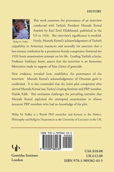 This work examines the provenance of an interview conducted with Turkish President Mustafa Kemal Atatürk by Karl Emil Hildebrand, published in the US in 1926. The interview's significance is twofold. Firstly, Mustafa Kemal's acknowledgement of Turkish culpability in Armenian massacres and secondly his assertion that a last-minute confession by a prominent female conspirator thwarted the 1926 Izmir assassination attempt on his life. Leading Turkish scholar, Professor Turkkaya Ataöv, asserts that the interview is an Armenian fabrication made in support of false claims of genocide. New evidence, revealed here, establishes the provenance of the interview. Mustafa Kemal's acknowledgement of Ottoman guilt is confirmed. It is also contended that the Izmir plot conspirator who alerted Mustafa Kemal was Turkey's leading feminist and PRP member, Halide Edib. This revelation challenges the prevailing narrative that Mustafa Kemal exploited the attempted assassination to silence innocent PRP members who had no knowledge of the plot.