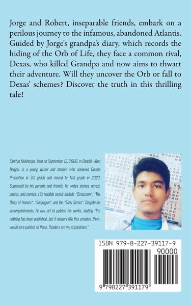 Jorge and Robert, inseparable friends, embark on a perilous journey to the infamous, abandoned Atlantis. Guided by Jorge's grandpa's diary, which records the hiding of the Orb of Life, they face a common rival, Dexas, who killed Grandpa and now aims to thwart their adventure. Will they uncover the Orb or fall to Dexas' schemes? Discover the truth in this thrilling tale!