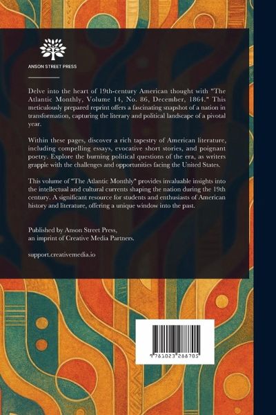 Delve into the heart of 19th-century American thought with "The Atlantic Monthly, Volume 14, No. 86, December, 1864." This meticulously prepared reprint offers a fascinating snapshot of a nation in transformation, capturing the literary and political landscape of a pivotal year. Within these pages, discover a rich tapestry of American literature, including compelling essays, evocative short stories, and poignant poetry. Explore the burning political questions of the era, as writers grapple with the challenges and opportunities facing the United States. This volume of "The Atlantic Monthly" provides invaluable insights into the intellectual and cultural currents shaping the nation during the 19th century. A significant resource for students and enthusiasts of American history and literature, offering a unique window into the past. This work has been selected by scholars as being culturally important, and is part of the knowledge base of civilization as we know it. This work is in the public domain in the United States of America, and possibly other nations. Within the United States, you may freely copy and distribute this work, as no entity (individual or corporate) has a copyright on the body of the work. Scholars believe, and we concur, that this work is important enough to be preserved, reproduced, and made generally available to the public. We appreciate your support of the preservation process, and thank you for being an important part of keeping this knowledge alive and relevant.