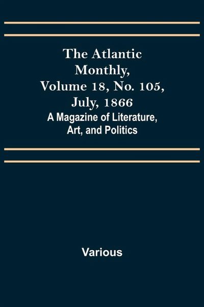 The book "" The Atlantic Monthly, Volume 18, No. 105, July, 1866; A Magazine of Literature, Art, and Politics "" has been considered important throughout the human history, and so that this work is never forgotten we have made efforts in its preservation by republishing this book in a modern format for present and future generations. This whole book has been reformatted, retyped and designed. These books are not made of scanned copies and hence the text is clear and readable.