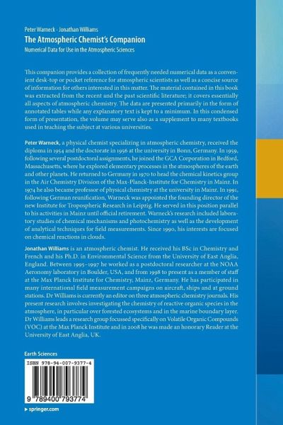 This companion provides a collection of frequently needed numerical data as a convenient desk-top or pocket reference for atmospheric scientists as well as a concise source of information for others interested in this matter. The material contained in this book was extracted from the recent and the past scientific literature; it covers essentially all aspects of atmospheric chemistry. The data are presented primarily in the form of annotated tables while any explanatory text is kept to a minimum. In this condensed form of presentation, the volume may serve also as a supplement to many textbooks used in teaching the subject at various universities.