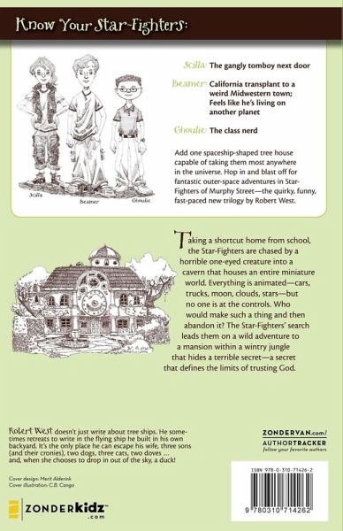 Know Your Star-FightersBeamer: California transplant to a weird Midwestern town. Feels like he's living on another planet. Scilla: the gangly tomboy next door. Ghoulie: the class nerd. Add one spaceship-shaped tree house capable of taking them most anywhere in the universe. Hop in and blast off for fantastic outer space adventures in Star-Fighters of Murphy Street--the quirky, funny, fast-paced new trilogy by Robert West.Taking a shortcut home from school, the Star-Fighters are chased by a horrible one-eyed creature into a cavern that houses an entire miniature world. Everything is animated--cars, trucks, moon, clouds, stars--but no one is at the controls. Who would make such a thing and then abandon it?The Star-Fighters' search leads them on a wild adventure to a palatial mansion within a wintry jungle that hides a terrible secret--a secret that defines the limits of trusting God.