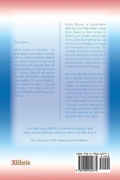 Giles Stone, a celebrated attorney from Manhattan, New York, takes a short break in Earl's Court, London. His journey turns out to be anything but, as he lives and mingles amongst the homeless community, his curiosity drives him questing for the truth about life at the bottom of socio-economic scale, an extraordinary experience he cherishes beyond measure. His true identity is discovered by a police sergeant, as a result, he moves to the Isle of Wight, compelling him to come face to face with Oliver Cards, a brilliant barrister and an old adversary. The outcome was both fascinating and horrifying in equal measure, overzealous marriage proposal backfires. His past catches up with him. Amends have to be made.
