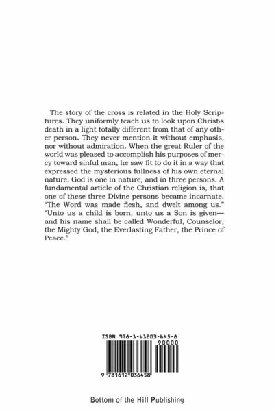 The story of the cross is related in the Holy Scriptures. They uniformly teach us to look upon Christ¿s death in a light totally different from that of any other person. They never mention it without emphasis, nor without admiration. When the great Ruler of the world was pleased to accomplish his purposes of mercy toward sinful man, he saw fit to do it in a way that expressed the mysterious fullness of his own eternal nature. God is one in nature, and in three persons. A fundamental article of the Christian religion is, that one of these three Divine persons became incarnate. "The Word was made flesh, and dwelt among us." "Unto us a child is born, unto us a Son is given-and his name shall be called Wonderful, Counselor, the Mighty God, the Everlasting Father, the Prince of Peace."