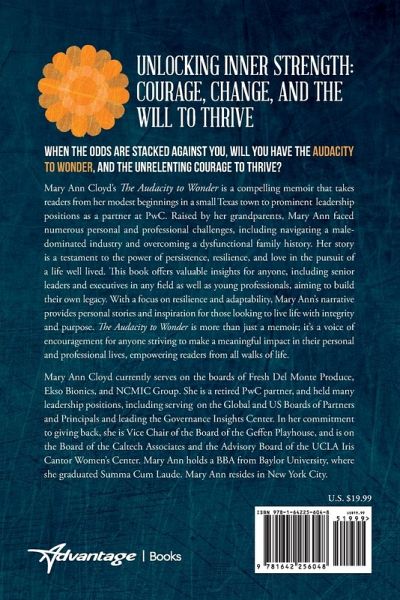 When the odds are stacked against you, will you have the audacity to wonder, and the unrelenting courage to thrive? Mary Ann Cloyd's The Audacity to Wonder is a compelling memoir that takes readers from her modest beginnings in a small Texas town to prominent leadership positions as a partner at PwC.