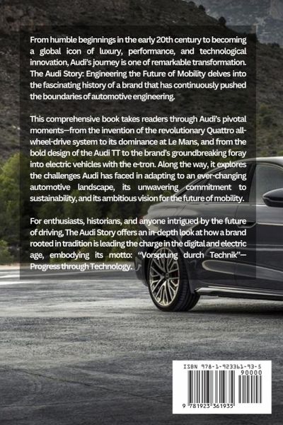 From humble beginnings in the early 20th century to becoming a global icon of luxury, performance, and technological innovation, Audi's journey is one of remarkable transformation. The Audi Story: Engineering the Future of Mobility delves into the fascinating history of a brand that has continuously pushed the boundaries of automotive engineering.This comprehensive book takes readers through Audi's pivotal moments-from the invention of the revolutionary Quattro all-wheel-drive system to its dominance at Le Mans, and from the bold design of the Audi TT to the brand's groundbreaking foray into electric vehicles with the e-tron. Along the way, it explores the challenges Audi has faced in adapting to an ever-changing automotive landscape, its unwavering commitment to sustainability, and its ambitious vision for the future of mobility.For enthusiasts, historians, and anyone intrigued by the future of driving, The Audi Story offers an in-depth look at how a brand rooted in tradition is leading the charge in the digital and electric age, embodying its motto: "Vorsprung durch Technik"-Progress through Technology.
