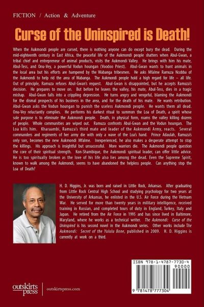 Curse of the Uninspired is Death! When the Aukmondi people are cursed, there is nothing anyone can do except bury the dead. During the mid-eighteenth century in East Africa, the peaceful life of the Aukmondi people shatters when Abul-Gwan, a tribal chief and entrepreneur of animal products, visits the Aukmondi Valley. He brings with him his mate, Abul-Tess, and Onu-Vey, a powerful Vodun houngan (Voodoo Priest). Abul-Gwan wants to hunt animals in the local area but his efforts are hampered by the Wabanga tribesmen. He asks Mfalme Ramuza Ncobba of the Aukmondi to help rid the area of Wabanga. The Aukmondi people hold a high regard for life - all life. Out of principle, Ramuza refuses Abul-Gwan's request. Abul-Gwan is disappointed, but he accepts Ramuza's decision. He prepares to move on. But before he leaves the valley, his mate, Abul-Tess, dies in a tragic mishap. Abul-Gwan falls into a crippling depression. He turns angry and vengeful, blaming the Aukmondi for the dismal prospects of his business in the area, and for the death of his mate. He wants retribution. Abul-Gwan asks the Vodun houngan to punish the useless Aukmondi people. He wants them all dead. Onu-Vey reluctantly complies. He performs his darkest ritual to summon the Loa of Death, a spirit whose sole purpose is to eliminate the Aukmondi people. Death, in physical form, roams the valley killing dozens of people. Whole communities are wiped out. Ramuza confronts Abul-Gwan and the Vodun houngan. The Loa kills him. Kharaambi, Ramuza's third mate and leader of the Aukmondi Army, reacts. Several commanders and regiments of her army die with only a wave of the Loa's hand. Prince Adaulah, Ramuza's only son, becomes the new Aukmondi Mfalme. Inexperienced, he also makes a desperate attempt to stop the killings. His approach is insightful but unsuccessful. More warriors die. The Aukmondi people question the core of their spiritual strength. Kon-Shambique, the Aukmondi spiritu