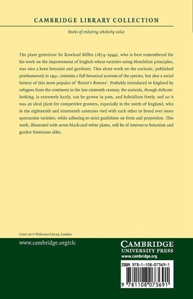 This short work on the auricula by the plant geneticist Sir Rowland Biffen (1874-1949), published posthumously in 1951, contains a botanical account of the species, but also a social history of this most popular of 'florist's flowers'. It will be of interest to botanists and garden historians alike.