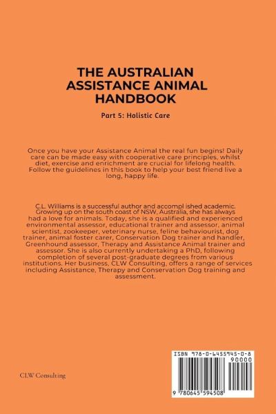 Once you have your Assistance Animal the real fun begins! Daily care can be made easy with cooperative care principles, whilst diet, exercise and enrichment are crucial for lifelong health. Follow the guidelines in this book to help your best friend live a long, happy life.