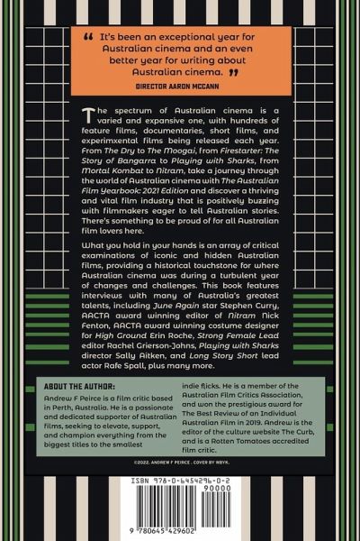 The Australian Film Yearbook features the work of the flourishing Australian film industry, with over one hundred Australian feature, non-fiction, and short films released to cinemas, streaming platforms, and film festivals during 2021. Discover a thriving and vital film industry that is positively buzzing with filmmakers eager to tell Australian stories, with over forty interviews and contributions that highlight the range of skill-sets and wealth of talent on show during 2021. Sharing their voice and perspectives on what it means to be a filmmaker are Australian creatives. From independent films through to Hollywood-backed productions, you will find critical examinations of iconic and hidden Australian films, providing a historical touchstone for where Australian cinema was during the turbulent year filled with changes and challenges - 2021. InterviewsStephen Maxwell Johnson - Director of High Ground Erin Roche - Costume Designer for High Ground Stephen Curry - Actor in June Again JJ Winlove - Director of June Again and Crossing Paths Ian Watson - Director of Unsound Nick Fenton - Editor of Nitram James Ashton - Sound Designer for Nitram and Mortal Kombat Mark Leonard Winter - Actor in Disclosure and Measure for Measure Angela Little - Composer for Streamline Olivia Martin McGuire & Brooke Silcox - Director and Producer of Freedom Swimmer Sharnya Yates - Director, Producer and Actor in Choice Rachel Grierson-Johns - Editor of Strong Female Lead Allan Clarke - Director of The Bowraville Murders Yaara Bou Melhem - Director of Unseen Skies Cathy Henkel & Sam Lara - Directors of Laura's Choice Frances Elliott & Samantha Marlowe - Directors of Girl Like You Barat Ali Batoor - Director of Batoor: A Refugee Story Eva Orner - Director of Burning Laura Sivis, Sandrine Charruyer & Sophie Lepowic - Creative Team behind Inferno Without Borders Sally Ingleton - Director of Wild Things Jaimen Hudson - Subject of Jaimen Hudson: From Sky to Sea Sally Aitken - Director of Playing with Sharks Bruce Berseford - Director of An Improbable Collection Jonathan Alley - Director of Love in Bright Landscapes Matthew Walker - Director of I'm Wanita Nicole Miller - Director of This is Port Adelaide Christopher Nelius - Director of Girls Can't Surf Tina Fielding, Jacqueline Pelczar, and Cody Greenwood - Creative Team behind Sparkles Thomas Wilson-White - Writer and Director of The Greenhouse Rafe Spall - Actor in Long Story Short Jon Bell - Writer and Director of The Moogai Addison Heath & Jasmine Jakupi - Writer and Directors of My Cherry Pie Robbie Studsor - Writer and Director of Shallow Breath Kylie Bracknell (Kaarljilba Kaardn) - Filmmaker and Artist behind Fist of Fury Noongar Daa Simon McQuoid - Director of Mortal Kombat