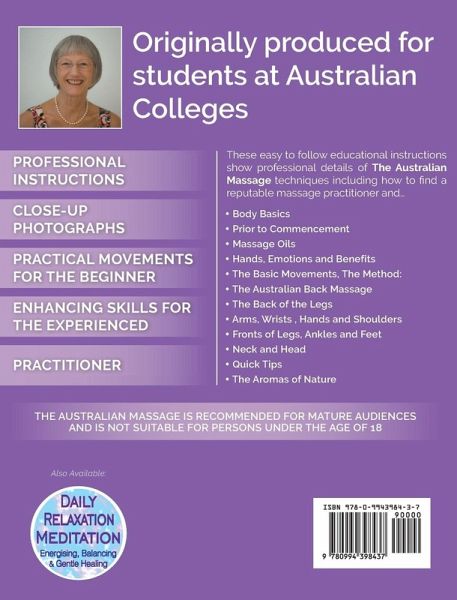 Originally produced for students at Australian Colleges Practical movements for every beginner Enhancing skills for the experienced practitioner Easy to follow educational instructions Intricate details and close-up photographs of The Australian Massage Techniques that are used by many registered massage practitioners Feel the healing with How to find a reputable practitioner.
