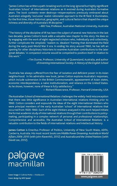 "James Cotton has written a path-breaking work on the long ignored but highly significant 'Australian School' of international relations as it evolved during Australia's formative years. The book contests even destroys misperceptions previously embraced about Australia's allegedly 'exclusive' realist-rationalist approach to the IR field. It illuminates, for the first time, those historical, geographic, and cultural factors that shaped the unique richness and diversity of Australia's IR discipline." Bill Tow, Professor, Australian National University