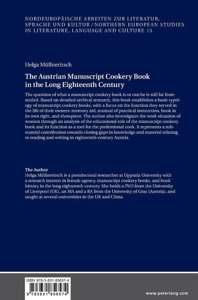 The question of what a manuscript cookery book is or can be is still far from settled. Based on detailed archival research, this book establishes a basic typology of manuscript cookery books, with a focus on the function they served in the life of their owners: memory aid, manual of practical instruction, book in its own right, and showpiece. The author also investigates the work situation of women through an analysis of the educational role of the manuscript cookery book and its function as a tool for the professional cook. It represents a substantial contribution towards closing gaps in knowledge and material relating to reading and writing in eighteenth-century Austria.