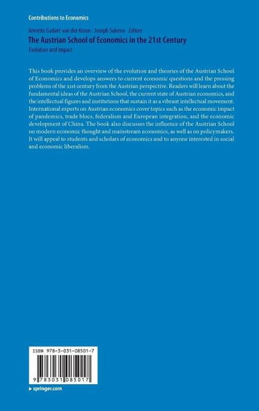 This book provides an overview of the evolution and theories of the Austrian School of Economics and develops answers to current economic questions and the pressing problems of the 21st century from the Austrian perspective. Readers will learn about the fundamental ideas of the Austrian School, the current state of Austrian economics, and the intellectual figures and institutions that sustain it as a vibrant intellectual movement. International experts on Austrian economics cover topics such as the economic impact of pandemics, trade blocs, federalism and European integration, and the economic development of China. The book also discusses the influence of the Austrian School on modern economic thought and mainstream economics, as well as on policymakers. It will appeal to students and scholars of economics and to anyone interested in social and economic liberalism.