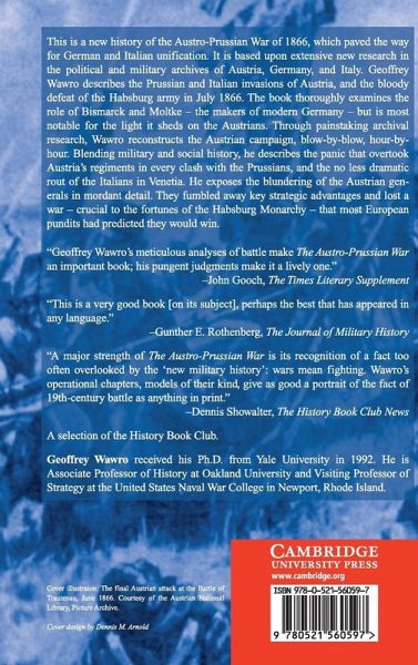 Geoffrey Wawro recounts the story of this crucial European war, from its diplomatic origins to its pivotal battles. This is the first history of the Austro-Prussian War in more than thirty years, and the first ever to be based upon extensive research in the political and military archives of Austria, France, Germany, Italy, and England. Wawro has reconstructed the Austrian campaign, blow-by-blow, hour-by-hour. He divulges the secrets of Prussian military success, as well as the dismal, sometimes lurid reasons for Austria's military collapse and Italy's near collapse. The book is most notable for the light it sheds on the Habsburg war effort.