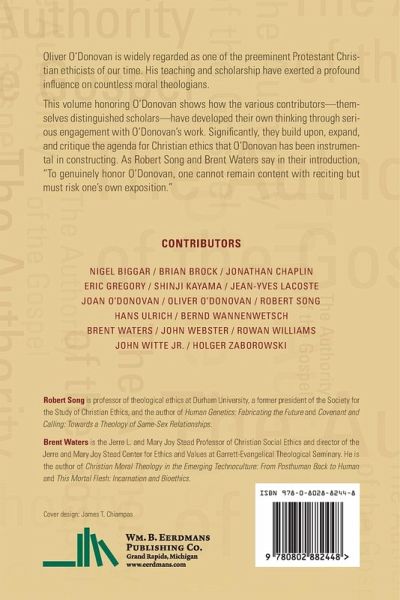 Oliver O'Donovan is widely regarded as one of the preeminent Protestant Christian ethicists of our time. His teaching and scholarship have exerted a profound influence on countless moral theologians. This volume honoring O'Donovan shows how the various contributors -- themselves distinguished scholars -- have developed their own thinking through serious engagement with O'Donovan's work. Significantly, they build upon, expand, and critique the agenda for Christian ethics that O'Donovan has been instrumental in constructing. As Robert Song and Brent Waters say in their introduction, "To genuinely honor O'Donovan, one cannot remain content with reciting but must risk one's own exposition." Contributors: Nigel Biggar Brian Brock Jonathan Chaplin Eric Gregory Shinji Kayama Jean-Yves Lacoste Joan O'Donovan Oliver O'Donovan Robert Song Hans Ulrich Bernd Wannenwetsch Brent Waters John Webster Rowan Williams John Witte Jr. Holger Zaborowski