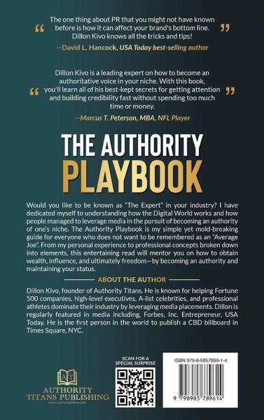Wall Street Journal & USA Today Best Seller Would you like to be known as "The Expert" in your industry? I have dedicated myself to understanding how the Digital World works and how people managed to leverage media in the pursuit of becoming an authority of one's niche. The Authority Playbook is my simple yet mold-breaking guide for everyone who does not want to be remembered as an "Average Joe". From my personal experience to professional concepts broken down into elements, this entertaining read will mentor you on how to obtain wealth, influence, and ultimately freedom - by becoming an authority and maintaining your status.
