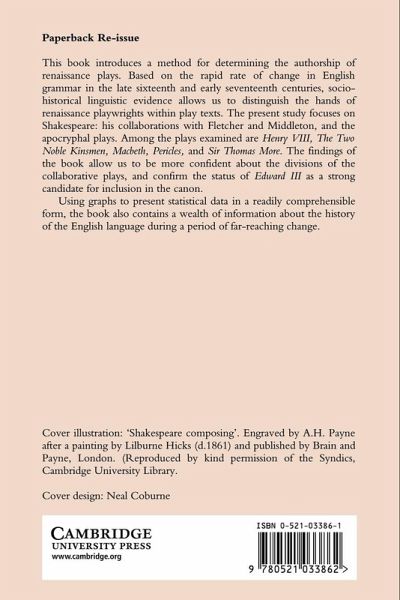 This book introduces a method for determining the authorship of Renaissance plays. Based on the rapid rate of change in English grammar in the late sixteenth- and early-seventeenth centuries, socio-historical linguistic evidence allows us to distinguish the hands of Renaissance playwrights within play texts. The present study focuses on Shakespeare: his collaborations with Fletcher and Middleton; and the apocryphal plays. Among the plays examined are Henry VIII, The Two Noble Kinsmen, Macbeth, Pericles and Sir Thomas More. The findings of the book allow us to be more confident about the divisions of the collaborative plays, and confirm the status of Edward III as a strong candidate for inclusion in the canon. Using graphs to present statistical data in a readily comprehensible form, the book also contains a wealth of information about the history of the English language during a period of rapid and far-reaching change.