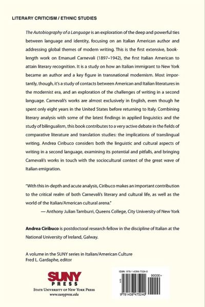 Explores the links between language, cultural identity, and creativity through the works of Emanuel Carnevali, one of the first Italian American authors to attain literary recognition.