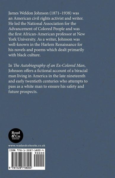 James Weldon Johnson (1871¿1938) was an American civil rights activist and writer. He led the National Association for the Advancement of Colored People and was the first African-American professor at New York University. As a writer, Johnson was well-known in the Harlem Renaissance for his novels and poems which dealt primarily with black culture. In ¿The Autobiography of an Ex-Colored Man¿, Johnson offers a fictional account of a biracial man living in America in the late nineteenth and early twentieth centuries who attempts to pass as a white man to ensure his safety and future prospects. Read & Co. Classics is republishing this classic novel now in a new addition complete with the poem ¿At the Closed Gate of Justice¿ by James D. Corrothers.