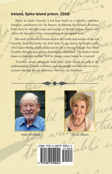 Ireland, Spike Island prison, 1919: Barely an adult, Goorthy is led from battle to a sightless, soundless dungeon, punishment for his bravery in fighting for Ireland's freedom. From there he will plot escape and revenge on British soldiers. And he will collect the thoughts of his compatriots in an autograph book. ¿¿¿¿¿¿¿ This work of historical fiction depicts the words and actions of the real Goorthy, Sean McCarthy, the Irish hero. At age sixteen he fought in the 1916 Easter Rising and he dedicated his life to freeing Ireland. Fate twists Goorthy through war, prison, deportation, and drink. The reader is both drawn to him and repelled. Will he change course before he is ruined? Goorthy's actual autograph book from Spike Island, as well as the understanding of family members, provides insight into the man we come to know through his tale of history: Goorthy, the Irish hero.