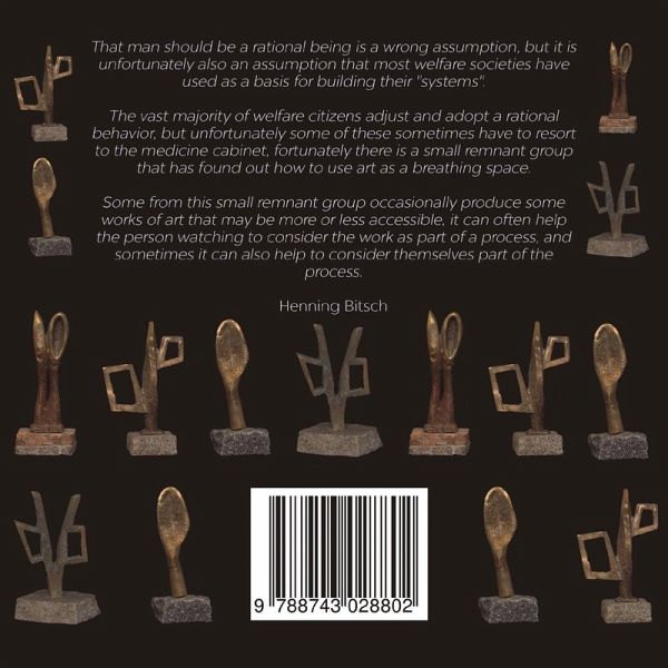 In 4th grade (9 years old) I made this sculpture out of a brick, it was in the craft shop class where we had a free assignment. I think that my parents, teacher and classmates wondered something about my motivation. I think that my interest in the creative process has been there for as long as I can remember, and in hindsight I think that my alternative view of life, has occasionally been of great concern to family and friends. I have always been a restless human being, but I remember how I could forget time and place when I was engrossed in making an art piece. And specially the development of the manufacturing process could get my undivided attention for days. On the other hand, I did not have the patience to get the last details in my artwork, however this had gotten better with age.That man should be a rational being is a wrong assumption, but it is unfortunately also an assumption that most welfare societies have used as a basis for building their "systems". The vast majority of welfare citizens adjust and adopt a rational behavior, but unfortunately some of these sometimes have to resort to the medicine cabinet, fortunately there is a small remnant group that has found out how to use art as a breathing space. Some from this small remnant group occasionally produce some works of art that may be more or less accessible, it can often help the person watching to consider the work as part of a process, and sometimes it can also help to consider themselves part of the process.