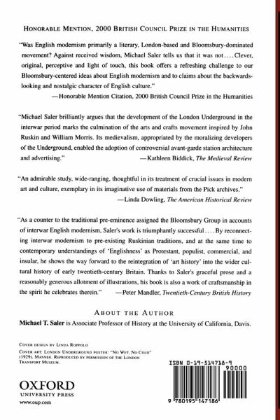 The Avant-Garde in Interwar England addresses modernism's ties to tradition, commerce, nationalism, and spirituality through an analysis of the assimilation of visual modernism in England between 1910 and 1939. During this period, a debate raged across the nation concerning the purpose of art in society. On one side were the aesthetic formalists, led by members of London's Bloomsbury Group, who thought art was autonomous from everyday life. On the other were England's so-called medieval modernists, many of them from the provincial North, who maintained that art had direct social functions and moral consequences. As Michael T. Saler demonstrates in this fascinating volume, the heated exchange between these two camps would ultimately set the terms for how modern art was perceived by the British public. Histories of English modernism have usually emphasized the seminal role played by the Bloomsbury Group in introducing, celebrating, and defining modernism, but Saler's study instead argues that, during the watershed years between the World Wars, modern art was most often understood in the terms laid out by the medieval modernists. As the name implies, these artists and intellectuals closely associated modernism with the art of the Middle Ages, building on the ideas of John Ruskin, William Morris, and other nineteenth-century romantic medievalists. In their view, modernism was a spiritual, national, and economic movement, a new and different artistic sensibility that was destined to revitalize England's culture as well as its commercial exports when applied to advertising and industrial design. This book, then, concerns the busy intersection of art, trade, and nationalidentity in the early decades of twentieth-century England. Specifically, it explores the life and work of Frank Pick, managing director of the London Underground, whose famous patronage of modern artists, architects, and designers was guided by a desire to unite nineteen