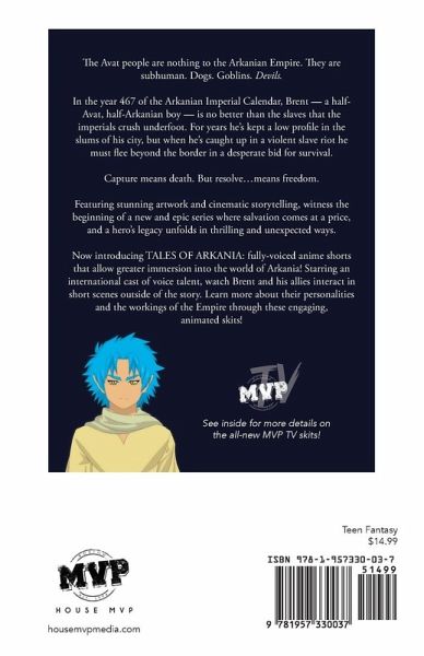 The Avat people are nothing to the Arkanian Empire. They are subhuman. Dogs. "Goblins." "Devils." In the year 467 of the Arkanian Imperial Calendar, Brent - a half-Avat, half-Arkanian boy - is no better than the slaves that the imperials crush underfoot. For years he's kept a low profile in the slums of his city, but when he's caught up in a violent slave riot he must flee beyond the border in a desperate bid for survival. Capture means death. But resolve...means freedom. Featuring stunning artwork and cinematic storytelling, witness the beginning of a new and epic series where salvation comes at a price, and a hero's legacy unfolds in thrilling and unexpected ways. Now introducing TALES OF ARKANIA: fully-voiced anime shorts that allow greater immersion into the world of Arkania! Starring an international cast of voice talent, watch Brent and his allies interact in short scenes outside of the story. Learn more about their personalities and the workings of the Empire through these engaging, animated skits!