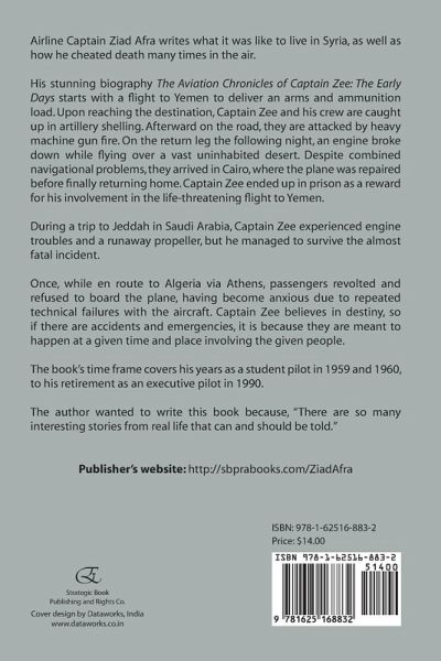Airline Captain Ziad Afra writes what it was like to live in Syria, as well as how he cheated death many times in the air.His stunning biography The Aviation Chronicles of Captain Zee: The Early Days starts with a flight to Yemen to deliver an arms and ammunition load. Upon reaching the destination, Captain Zee and his crew are caught up in artillery shelling. Afterward on the road, they are attacked by heavy machine gun fire. On the return leg the following night, an engine breaks down while flying over a vast uninhabited desert. Despite combined navigational problems, they arrive in Cairo, where the plane is repaired before finally returning home. Captain Zee ends up in prison as a reward for his involvement in the life-threatening flight to Yemen.During a trip to Jeddah in Saudi Arabia, Captain Zee experiences engine troubles and a runaway propeller, but he manages to survive the almost fatal incident. Once, while en route to Algeria via Athens, passengers revolt and refuse to board the plane, having become anxious due to repeated technical failures with the aircraft. Captain Zee believes in destiny, so if there are accidents and emergencies, it is because they are meant to happen at a given time and place involving the given people. The book's time frame covers his years as a student pilot in 1959 and 1960, to his retirement as an executive pilot in 1990. The author wanted to write this book because, "There are so many interesting stories from real life that can and should be told."Publisher's website: http://sbprabooks.com/ZiadAfra