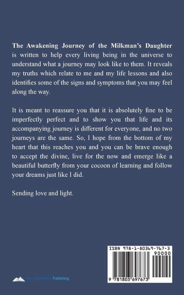 The Awakening Journey of the Milkman's Daughter is written to help every living being in the universe to understand what a journey may look like to them. It reveals my truths which relate to me and my life lessons and also identifies some of the signs and symptoms that you may feel along the way. It is meant to reassure you that it is absolutely fine to be imperfectly perfect and to show you that life and its accompanying journey is different for everyone, and no two journeys are the same. So, I hope from the bottom of my heart that this reaches you and you can be brave enough to accept the divine, live for the now and emerge like a beautiful butterfly from your cocoon of learning and follow your dreams just like I did. Sending love and light.