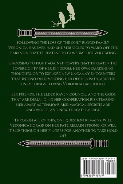 Following the loss of the only blood family Veronica has ever had, she struggles to ward off the darkness that threatens to consume her very being.Choosing to fight against powers that threaten the sovereignty of her kingdom, her own darkening thoughts, or to explore new uncanny encounters that intend on diverting her off her path, are the only things keeping Veronica grounded.Her friends, The Elder Raven council, and the Gods that are demanding her cooperation risk tearing her apart as tensions rise, magical secrets are uncovered, and new threats emerge.Through all of this, one question remains. Will Veronica's grasp on her fate remain strong, or will it slip through her fingers for another to take hold of?