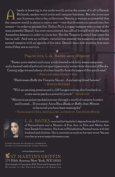 The second book in L. A. Banks's thrilling Vampire Huntress series featuring Damali Richards, a young African American woman who is all that stands between us and the enternal night. There is a vampire war brewing in the underworld and at the center of it all is Damali Richards, spoken word artist and Vampire Huntress. But she is not just any Vampire Huntress, she is the millenium Neteru. A woman so potentially powerful that the vampire world is about to invoke a bloody battle that threatens to spill over onto her streets in order to posses her. It's just a matter of who will get to her first. Fallon Nuit, a rogue vampire, is one of the most powerful Damali has ever encountered and he has allied himself with the deadly Amanrath demons in order to claim her. But the Vampire Council has plans for her as well. And now an unlikely variable has entered into the equation, an ex-lover now turned vampire with an agenda of his own. And Damali must risk trusting him once more if they are to survive.