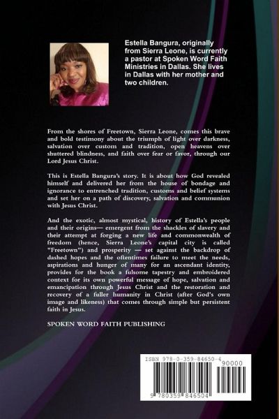 A bold and compelling account of one woman's journey from her discovery of Christ through her struggle to break free from the strongholds of Sierra Leone culture, tradition and custom; the dangers she faced given her unwieldy marriage to a Muslim, out into the light of God's fellowship, communion and grace, with the peace and reward that comes through serving Christ.