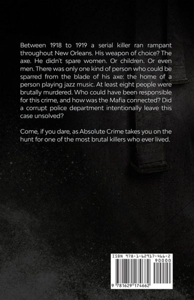 Discover a serial killer you'll never forget! Between 1918 to 1919 a serial killer ran rampant throughout New Orleans. His weapon of choice? The axe. He didn't spare women. Or children. Or even men. There was only one kind of person who could be sparred from the blade of his axe: the home of a person playing jazz music. At least eight people were brutally murdered. Who could have been responsible for this crime, and how was the Mafia connected? Did a corrupt police department intentionally leave this case unsolved? Come, if you dare, as Absolute Crime takes you on the hunt for one of the most brutal killers who ever lived.
