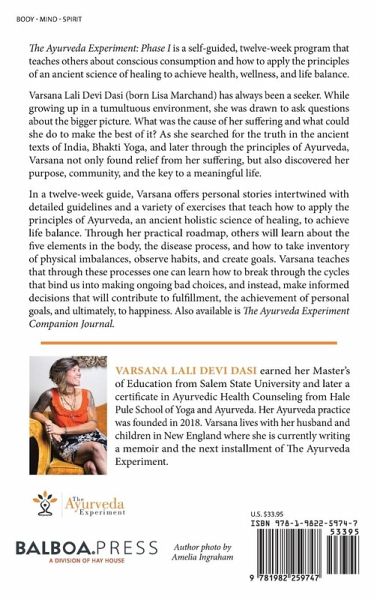 The Ayurveda Experiment: Phase I is a self-guided, twelve-week program that teaches others about conscious consumption and how to apply the principles of an ancient science of healing to achieve health, wellness, and life balance. In a twelve-week guide, Varsana offers personal stories intertwined with detailed guidelines and a variety of exercises that teach how to apply the principles of Ayurveda, an ancient holistic science of healing, to achieve life balance. Through her practical roadmap, others will learn about the five elements in the body, the disease process, and how to take inventory of physical imbalances, observe habits, and create goals. Varsana teaches that through these processes one can learn how to break through the cycles that bind us into making ongoing bad choices, and instead, make informed decisions that will contribute to fulfillment, the achievement of personal goals, and ultimately, to happiness. Also available is The Ayurveda Experiment Companion Journal. Varsana Lali Devi Dasi (born Lisa Marchand) has always been a seeker. While growing up in a tumultuous environment, she was drawn to ask questions about the bigger picture. What was the cause of her suffering and what could she do to make the best of it? As she searched for the truth in the ancient texts of India, Bhakti Yoga, and later through the principles of Ayurveda, Varsana not only found relief from her suffering, but also discovered her purpose, community, and the key to a meaningful life.