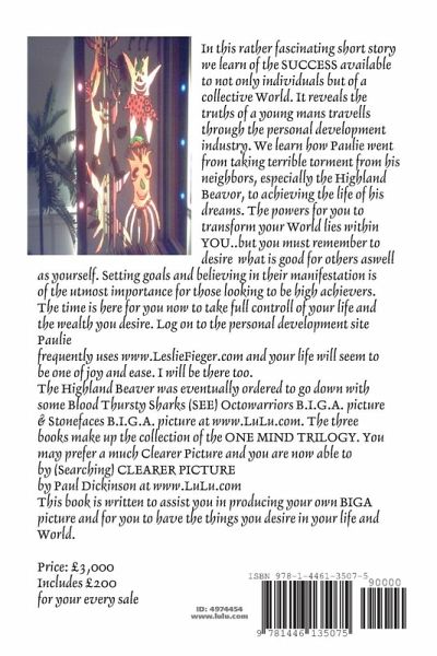 One Mind Trilogy Part 1. The B.I.G.A. picture describes a young mans journey through the personal development industry and highlights that we are all capable of achieving more. Featuring the Octowarriors Lottery Show and the succesfull completion of the B.I.G.A. Bridge. Also includes activation details of YOUR OctoKash (King Katoots Loot. This is your opportunity to achieve Ultimate Success. Earn extra income and set your goals with this NEW product. AFFIRM...BELIEVE...ACHIEVE. Please NOTE King Katoots Loot or OctoKash Stash is found at www.YouTube.com and YOUR A4 Foldio and Stickers can be bought seperatly at Rymans Stationary. King Katoots Loot (is ideal for) Any Board, Card or Domino Game. K.K.L & A.B.C.DicKinGson's Incorporated. Business opportunity was £3,000 NOW only £300 with £200 paid to You with every direct introduction/sale. (c) Copyright 2010.
