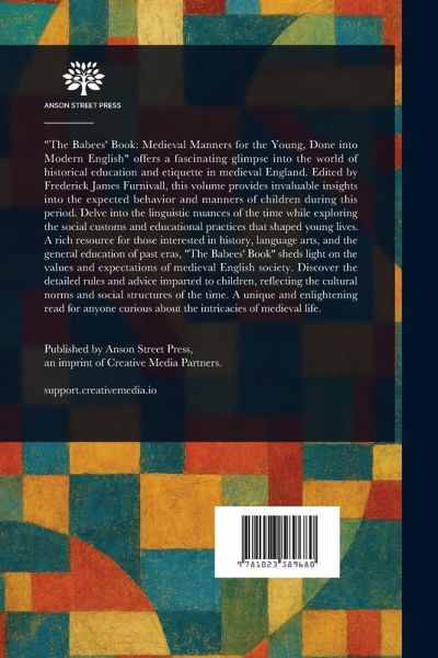 "The Babees' Book: Medieval Manners for the Young, Done into Modern English" offers a fascinating glimpse into the world of historical education and etiquette in medieval England. Edited by Frederick James Furnivall, this volume provides invaluable insights into the expected behavior and manners of children during this period. Delve into the linguistic nuances of the time while exploring the social customs and educational practices that shaped young lives. A rich resource for those interested in history, language arts, and the general education of past eras, "The Babees' Book" sheds light on the values and expectations of medieval English society. Discover the detailed rules and advice imparted to children, reflecting the cultural norms and social structures of the time. A unique and enlightening read for anyone curious about the intricacies of medieval life. This work has been selected by scholars as being culturally important, and is part of the knowledge base of civilization as we know it. This work is in the public domain in the United States of America, and possibly other nations. Within the United States, you may freely copy and distribute this work, as no entity (individual or corporate) has a copyright on the body of the work. Scholars believe, and we concur, that this work is important enough to be preserved, reproduced, and made generally available to the public. We appreciate your support of the preservation process, and thank you for being an important part of keeping this knowledge alive and relevant.