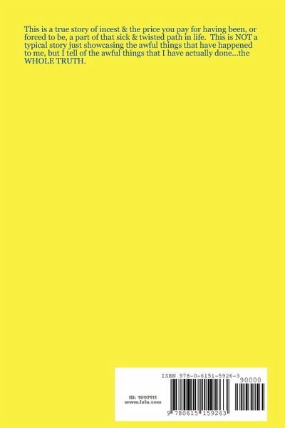 8 years of being molested by my brother and what that has done to me emotionally, physically, and psychologically. The scars that have been left and the obstacles I have overcome are all here, as well as how to identify any problems and how to deal with them.