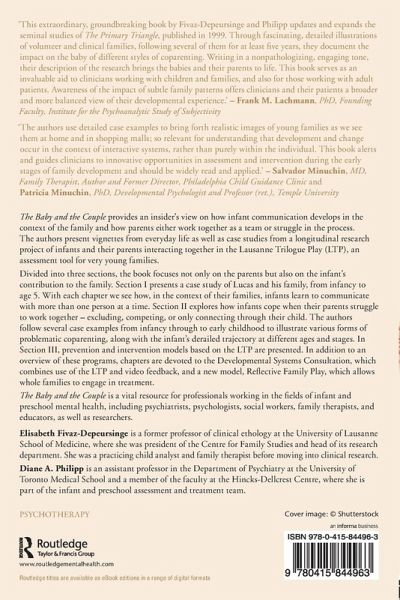 The Baby and the Couple provides an insider's view on how infant communication develops in the context of the family and how parents either work together as a team or struggle in the process. The authors present vignettes from everyday life as well as case studies from a longitudinal research project of infants and their parents interacting together in the Lausanne Trilogue Play (LTP), an assessment tool for very young families. Divided into three parts, the book focuses not only on the parents, but also on the infant's contribution to the family.¿ Part 1 presents a case study of Lucas and his family, from infancy to age 5. With each chapter we see how, in the context of their families, infants learn to communicate with more than one person at a time. Part 2 explores how infants cope when their parents struggle to work together - excluding, competing or only connecting through their child. The authors follow several case examples from infancy through to early childhood to illustrate various forms of problematic co-parenting, along with the infant's derailed trajectory at different ages and stages. In Part 3, prevention and intervention models based on the LTP are presented. In addition to an overview of these programs, chapters are devoted to the Developmental Systems Consultation, which combines use of the LTP and video feedback, and a new model, Reflective Family Play, which allows whole families to engage in treatment. The Baby and the Couple is a vital resource for professionals working in the fields of infant and preschool mental health including psychiatrists, psychologists, social workers, family therapists and educators, as well as researchers.