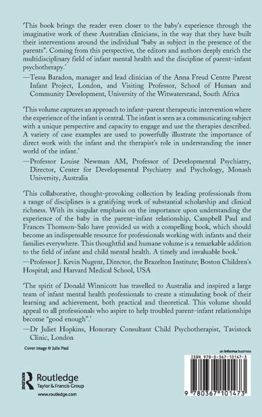 The book describes the underpinning theoretical principles and the settings and forms of direct clinical practice, ranging from work with acutely ill babies, to more everyday interventions in crying, feeding and sleeping difficulties, as well as infant-parent psychotherapy.